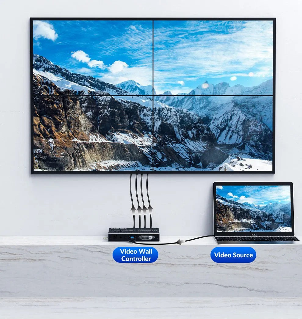 - Multiple video wall modes: 2×2, 1×4, 4×1, 1×3, 3×1, 1×2, 2×1, splitter