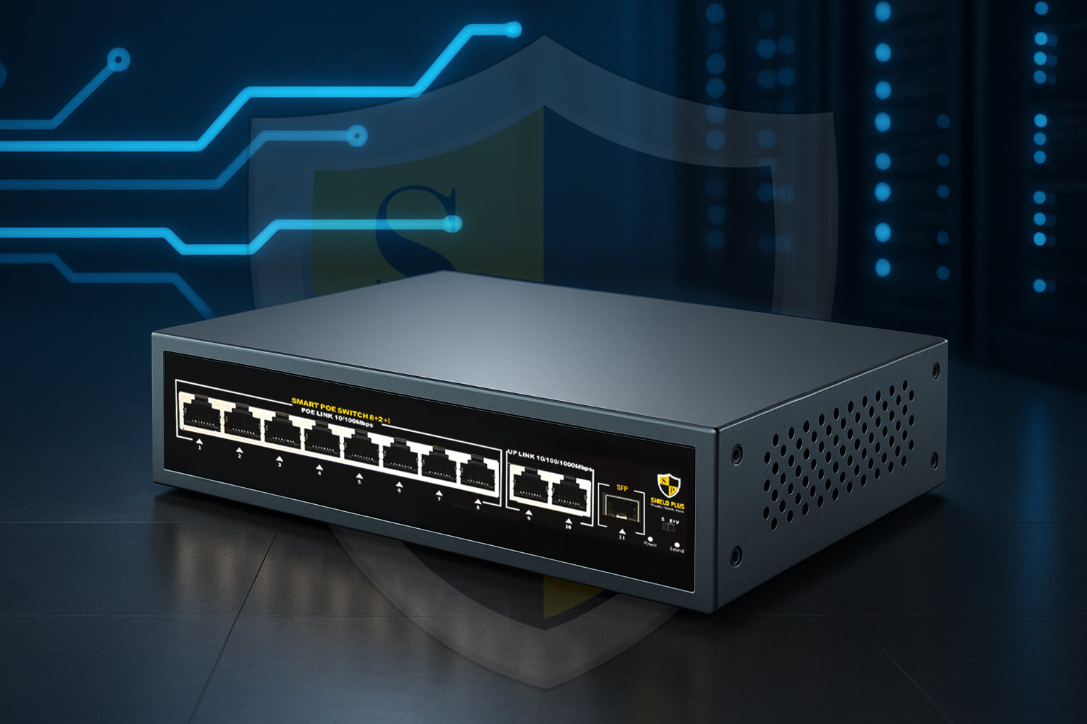 The SP-8+2+1 Full Giga PoE Switch – 120W from Shield Plus offers high-speed, high-power connectivity for demanding network environments. Equipped with 8 Gigabit PoE ports, 2 Gigabit uplink ports, and 1 SFP port, it delivers seamless 1000 Mbps data transfer across all ports, ensuring fast and stable performance for bandwidth-intensive applications.