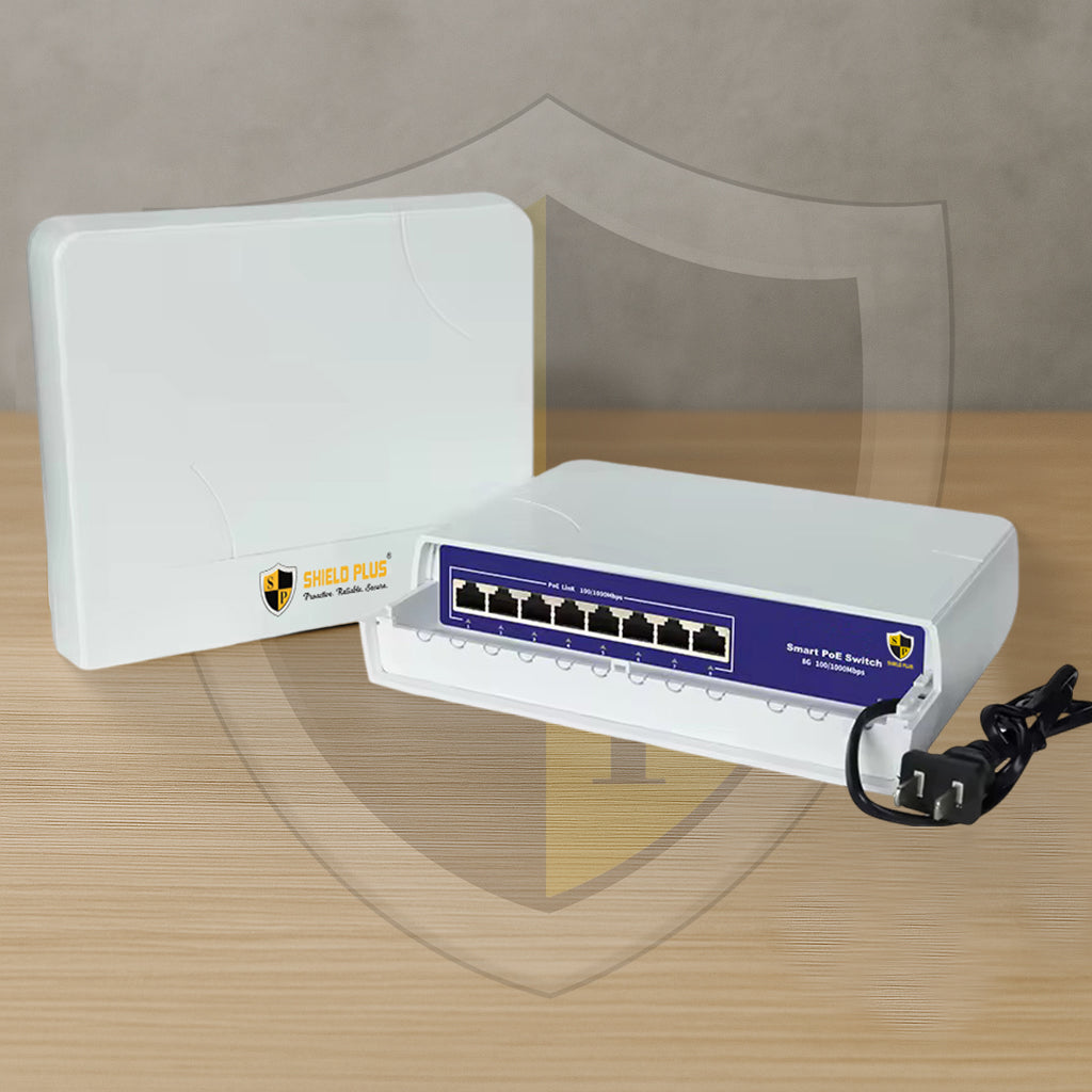 Built for tough environments, the SP-8+2 Waterproof PoE Switch – 120W from Shield Plus delivers reliable power and data transmission with added protection. Featuring 8 PoE ports and 2 uplink ports, each supporting 10/100 Mbps, with an option for Gigabit uplink (10/100/1000 Mbps), this switch is ideal for outdoor or harsh industrial setups.