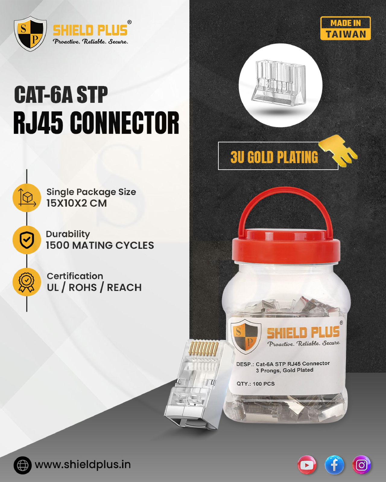 This high-performance RJ45 connector is designed for professional networking installations requiring secure, shielded terminations. With robust shielding, 3µ gold-plated contacts, and compatibility with CAT6A and CAT7 cables, it ensures stable high-speed data transmission even in interference-prone environments.