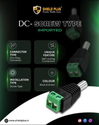 The DC Screw Type Imported Connector is a reliable and user-friendly solution for making quick, secure DC power connections without soldering. Featuring a standard DC male plug combined with a screw terminal block, this connector is ideal for both professionals and hobbyists working on low-voltage applications such as LED lighting, CCTV systems, and prototyping project