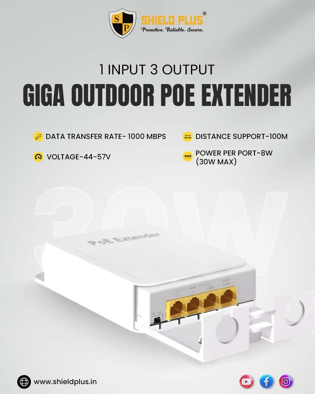 The SP-Giga Outdoor PoE Extender 1 Input 3 Output is built to extend your PoE network with high-speed 1000 Mbps data transfer, even in challenging outdoor environments. Designed for powering up to three devices, this extender provides 1 input port and 3 output ports, making it ideal for large-scale IP camera systems, wireless access points, and other PoE-enabled devices.