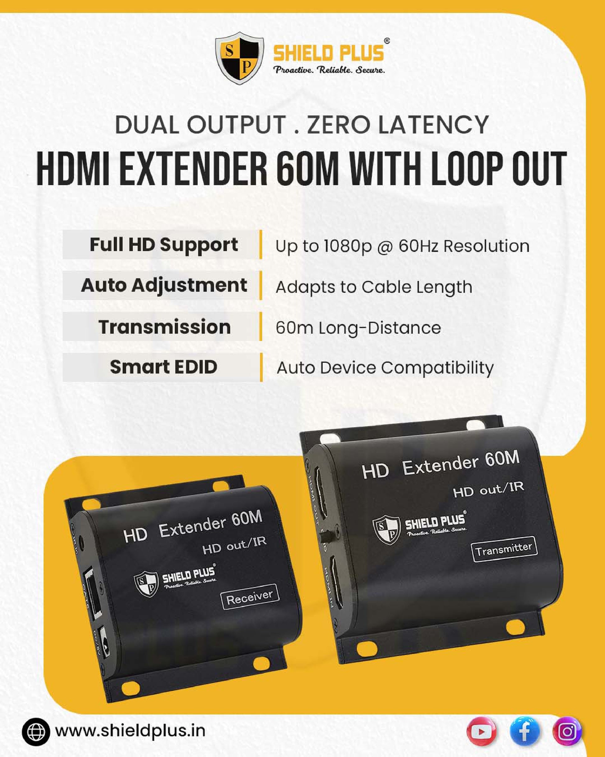 The SP-HDMI Extender 60M with Loop-Out is a high-performance AV solution that transmits Full HD HDMI signals up to 60 meters using a single Cat-6 or Cat-6A cable. With an integrated HDMI Loop-Out on the transmitter, it allows for local display monitoring while extending the signal to a remote screen. This plug-and-play device is perfect for CCTV setups, digital signage, home theaters, classrooms, and any application requiring real-time HDMI transmission with zero signal loss.