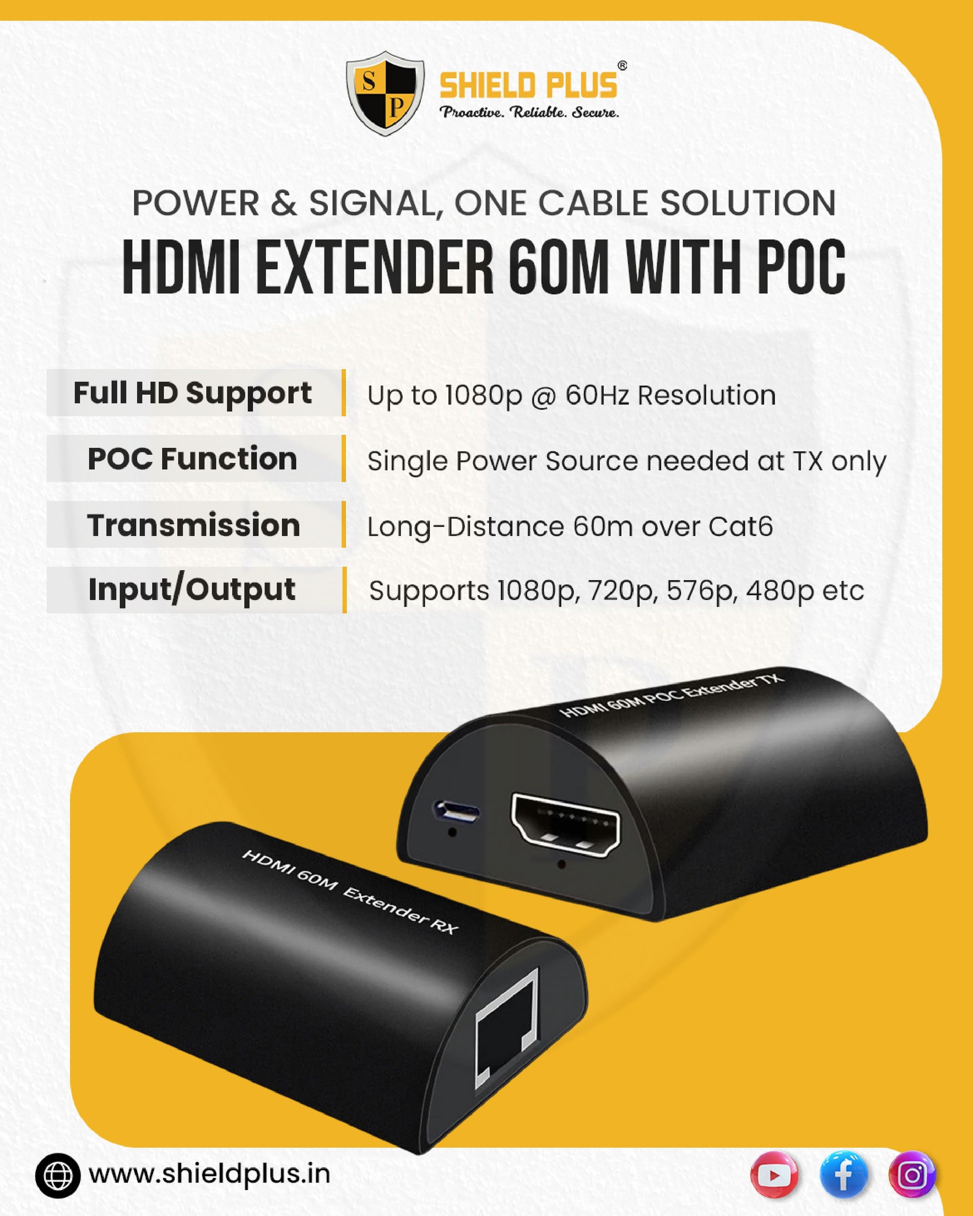 The SP-HDMI Extender 60M with POC is a high-quality HDMI transmission solution that allows you to extend Full HD 1080p signals up to 60 meters over a single Cat-6 or Cat-6A Ethernet cable. Featuring POC (Power Over Cable) technology, this device requires only one power adapter on the transmitter side, reducing cable clutter and simplifying installation. Ideal for use in home theaters, digital signage, classrooms, retail displays, and CCTV applications, it ensures stable, lag-free video and audio transmission.