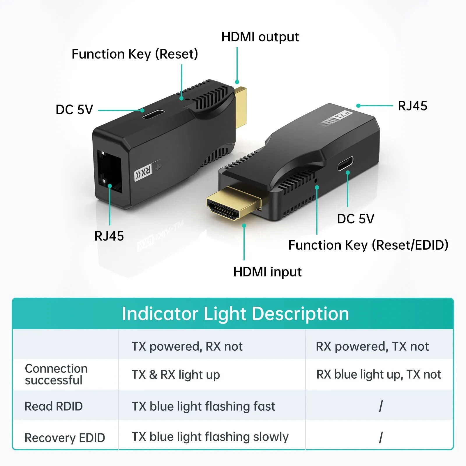 ✅ POC Function (Power Over Cable): Only one power adapter is needed—connect it to the TX (transmitter) side, and it powers the entire setup.