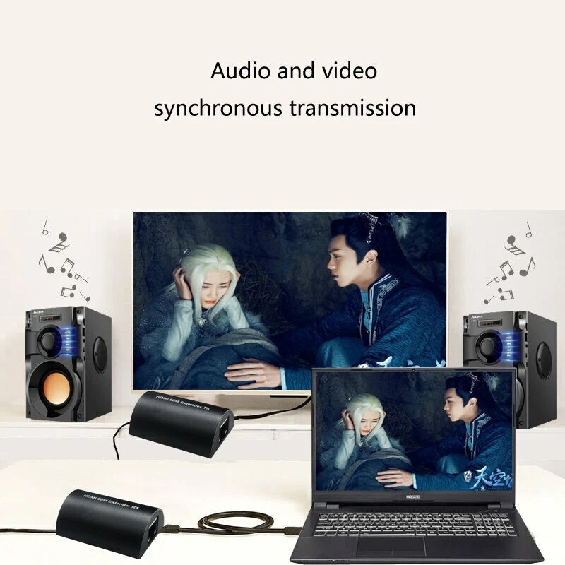 ✅ 60M Long Distance Transmission: Easily extend your HDMI signal up to 60 meters using a single Cat-6 or Cat-6A Ethernet cable.