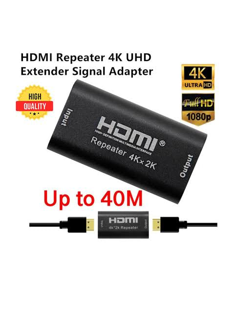 The 4K HDMI Repeater (Female to Female) is designed to extend HDMI signals over long distances without signal loss or degradation. It regenerates and boosts weak HDMI signals, allowing high-quality video and audio transmission up to 60 meters for 1080P and 40 meters for 4K resolution.