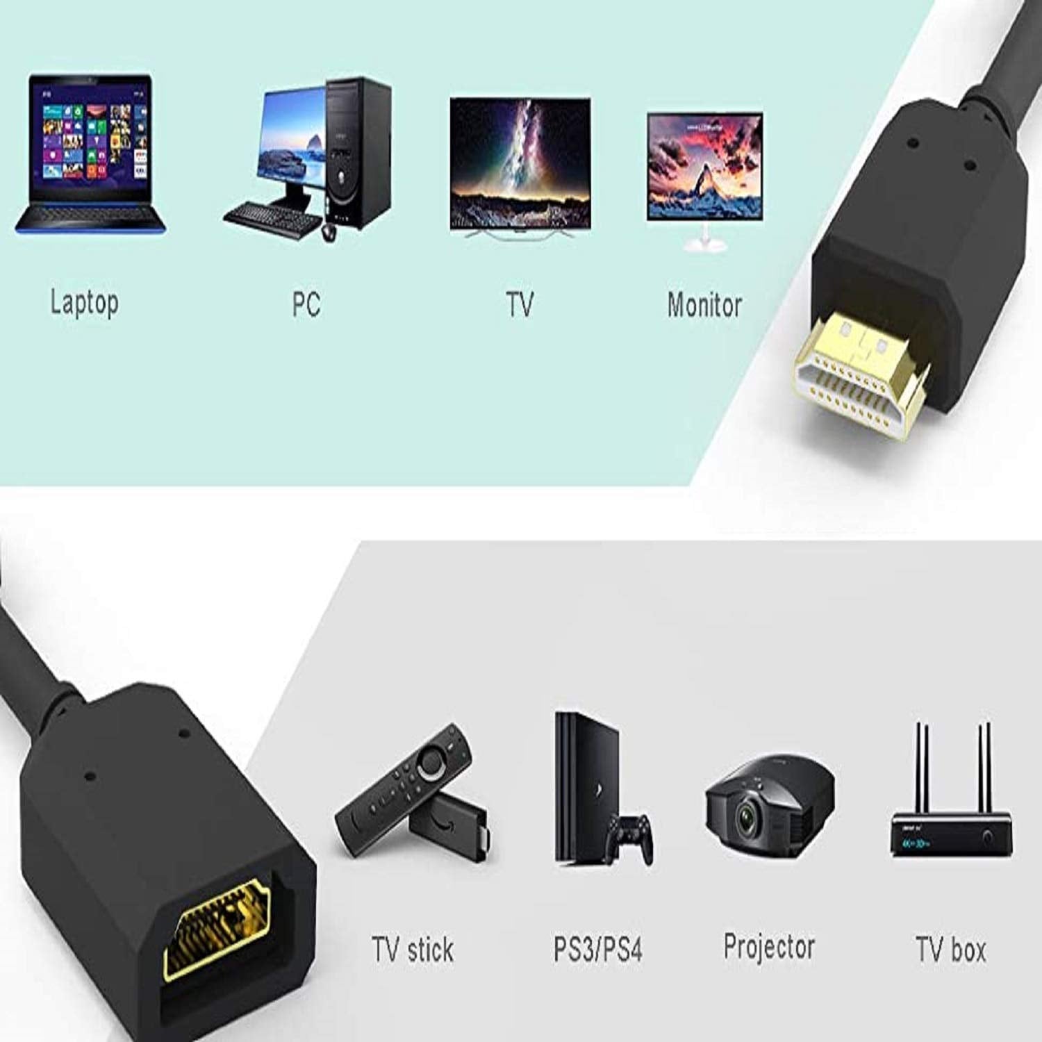 Introducing our HDMI Male to Female Cable, designed for reliable, high-definition video and audio transmission. Whether you're connecting a PC to a monitor, a laptop to a projector, or gaming consoles to a TV, this cable ensures seamless and stable performance across all HDMI-enabled devices.