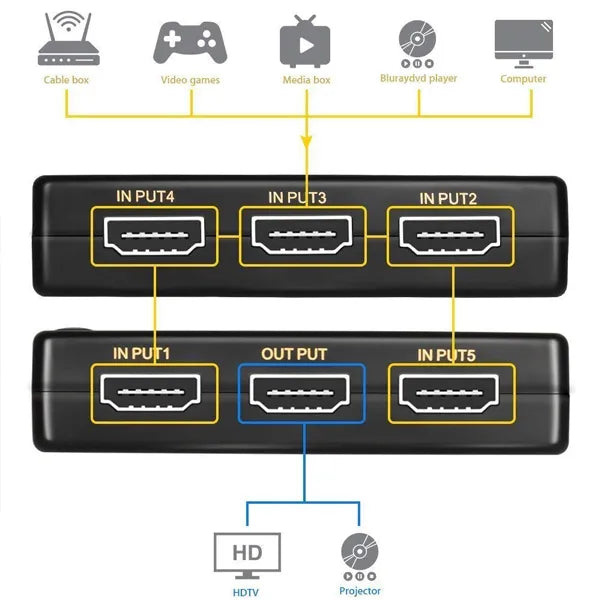 SP- HDMI SWITCH 5 PORT WITH REMOTE-1080P