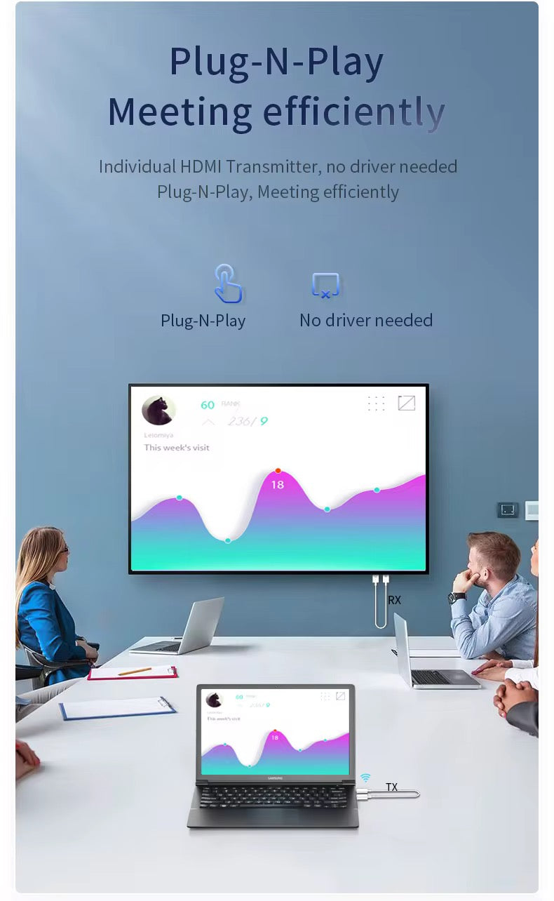 ✅ Plug-and-Play Installation: Easy setup without any configuration or drivers. Functions just like a traditional HDMI cable—but wirelessly.